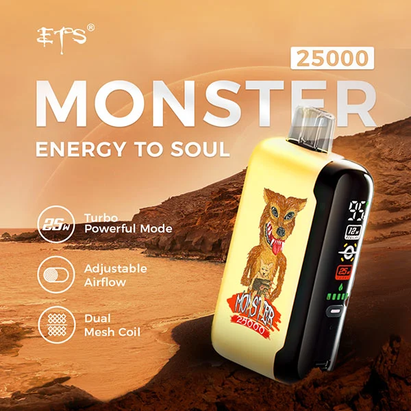 ETS Monster 25000 features 28ml of vape juice and an 800mAh built-in battery with two vaping modes. Its dual mesh coils activate Turbo Mode, delivering stronger flavors and vapor for up to 25,000 puffs. With a smooth carbon fiber finish for comfort, it stands out from other disposable kits. If you’re looking for an exceptional vaping experience, try the ETS Monster 25000.